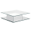 Der Couchtisch Olli verfügt über eine Platte und ein Gestell aus 12mm starkem, gehärtetem Extralight Glas. Die freitragende Glasplatte wird durch ein mit Spiegel verkleidetes Schubladenelement mit Push-Pull Öffnung gestützt, der im Winkel von 45° verklebt ist. Das Gestell ist komplett aus versilbertem Spiegel. Die Versilberung der Abdeckplatte deckt ausschließlich den Bereich des Schubladenelements ab. Das überhängende Teil ist transparent. Ein solides Befestigungssystem sorgt für die Stabilität und erlaubt die Demontage der verschiedenen Elemente.