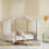 Der Hausbett-Himmel lässt sich ganz einfach am Holzrahmen des Bettes befestigen und kann bei Bedarf abgenommen und gewaschen werden.