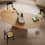 In the version offered here, the Monoplauto dining table has a wood veneer surface and a round tabletop supported by a leaf-shaped table leg.